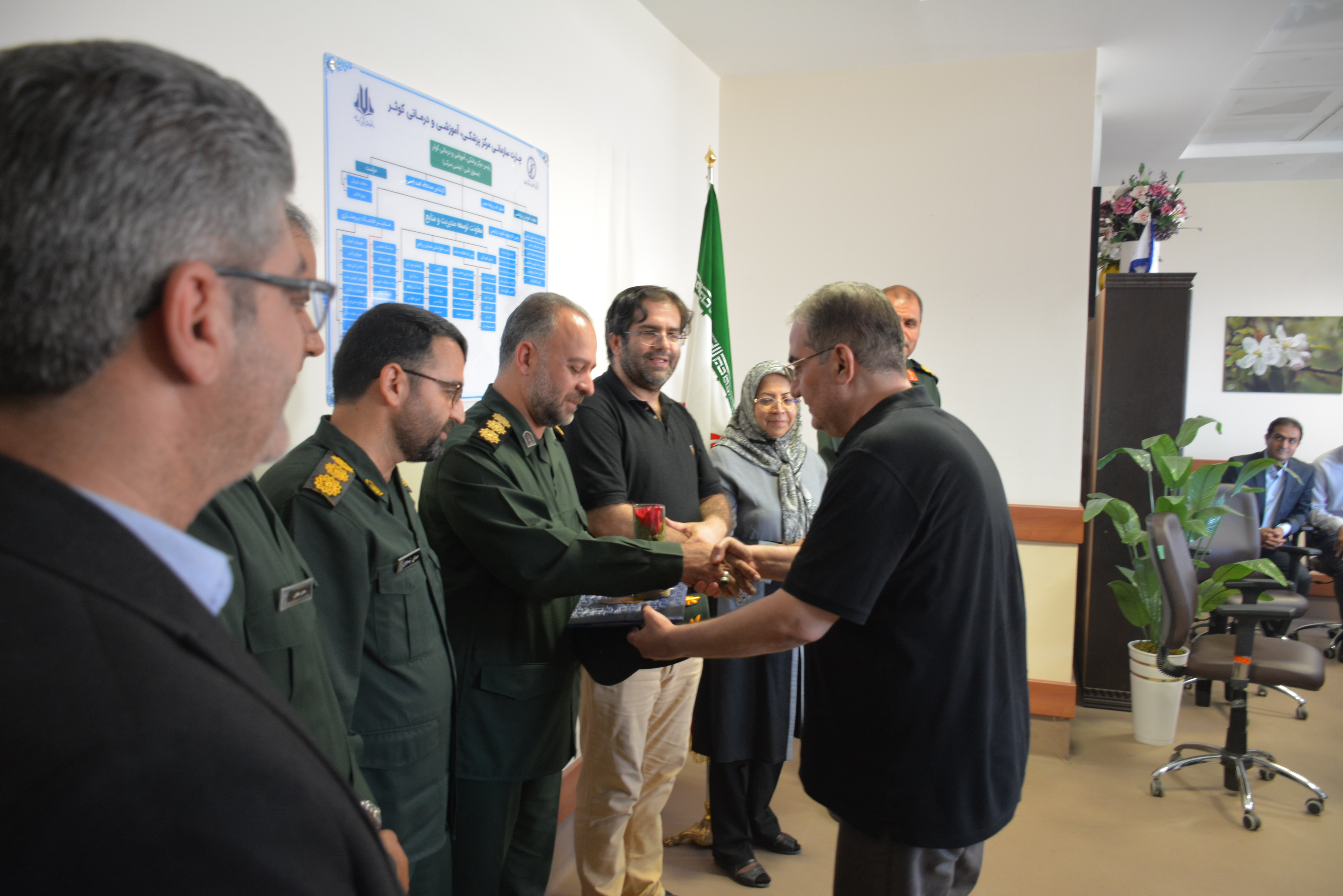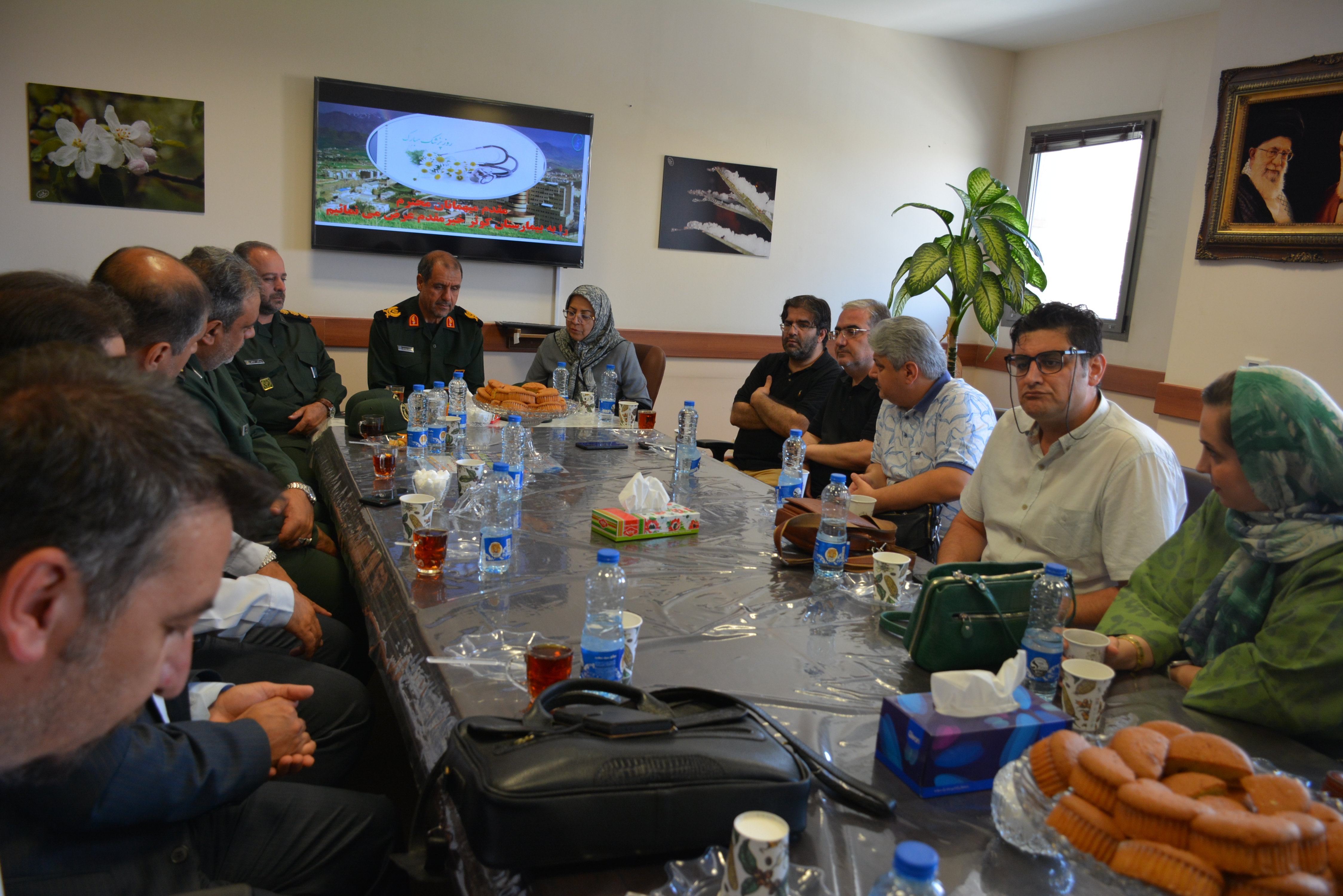 به گزارش روابط عمومی مرکز، به مناسبت فرا رسیدن یکم شهریور ماه ، زادروز دانشمند بزرگ و طبیب برجسته ایرانی، شیخ الرئیس ابوعلی سینا و روز پزشک، سردار جمشید رضایی فرمانده سپاه بیت المقدس استان کردستان و هیأت همراه، دکتر شعله شاه غیبی رئیس دانشگاه، معاون درمان و مدیر روابط عمومی دانشگاه جهت تبریک این روز در مرکز حضور یافتند.