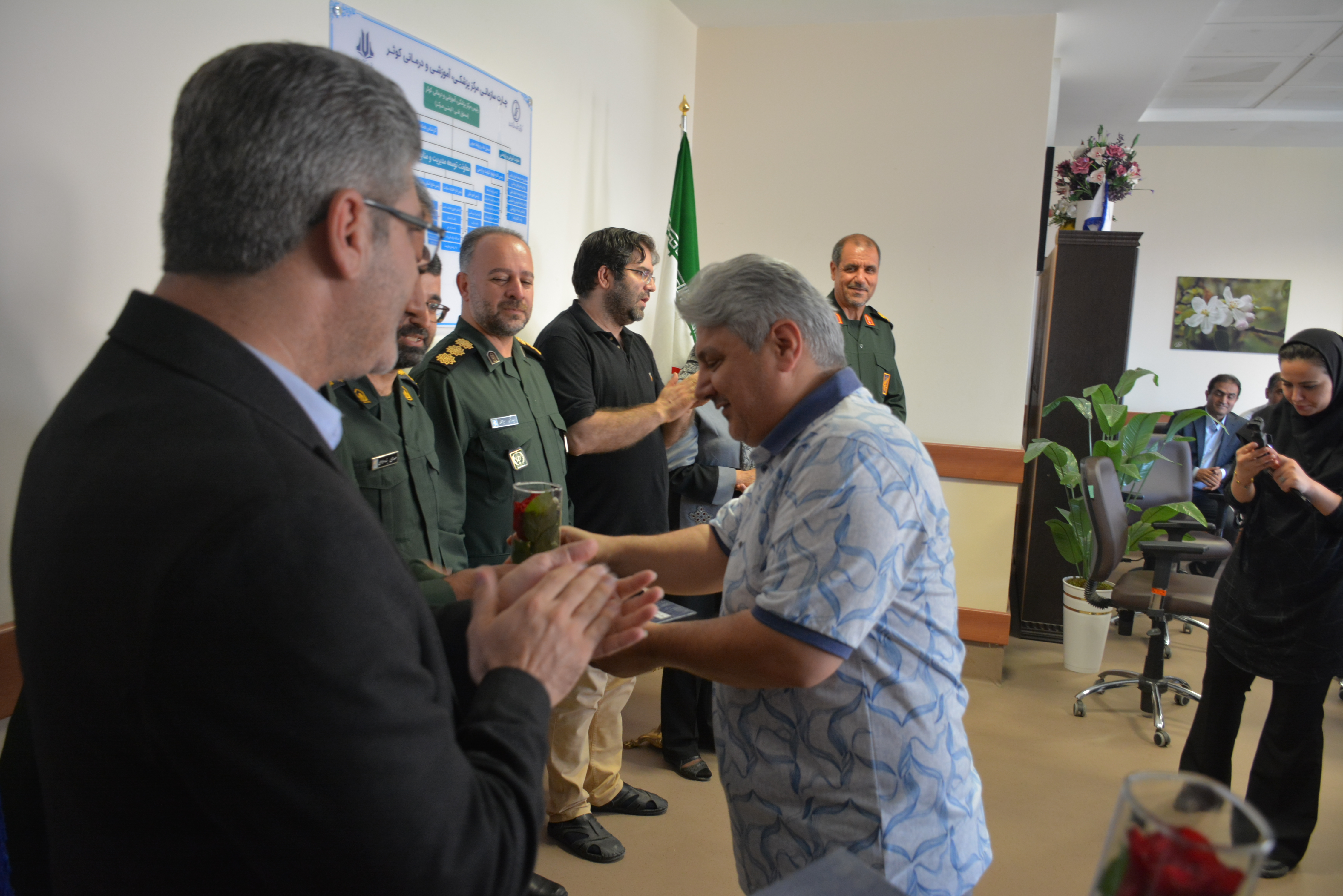 در این مراسم که با حضور دکتر محمدآزاد ماجدی رئیس مرکز، تیم مدیریت بیمارستان و تعدادی از پزشکان متخصص و فوق تخصص شاغل در مرکز برگزار گردید، لوح تقدیر و هدایایی به رسم یادبود با همکاری بسیج جامعه پزشکی به پزشکان حاضر در مراسم اهدا گردید.