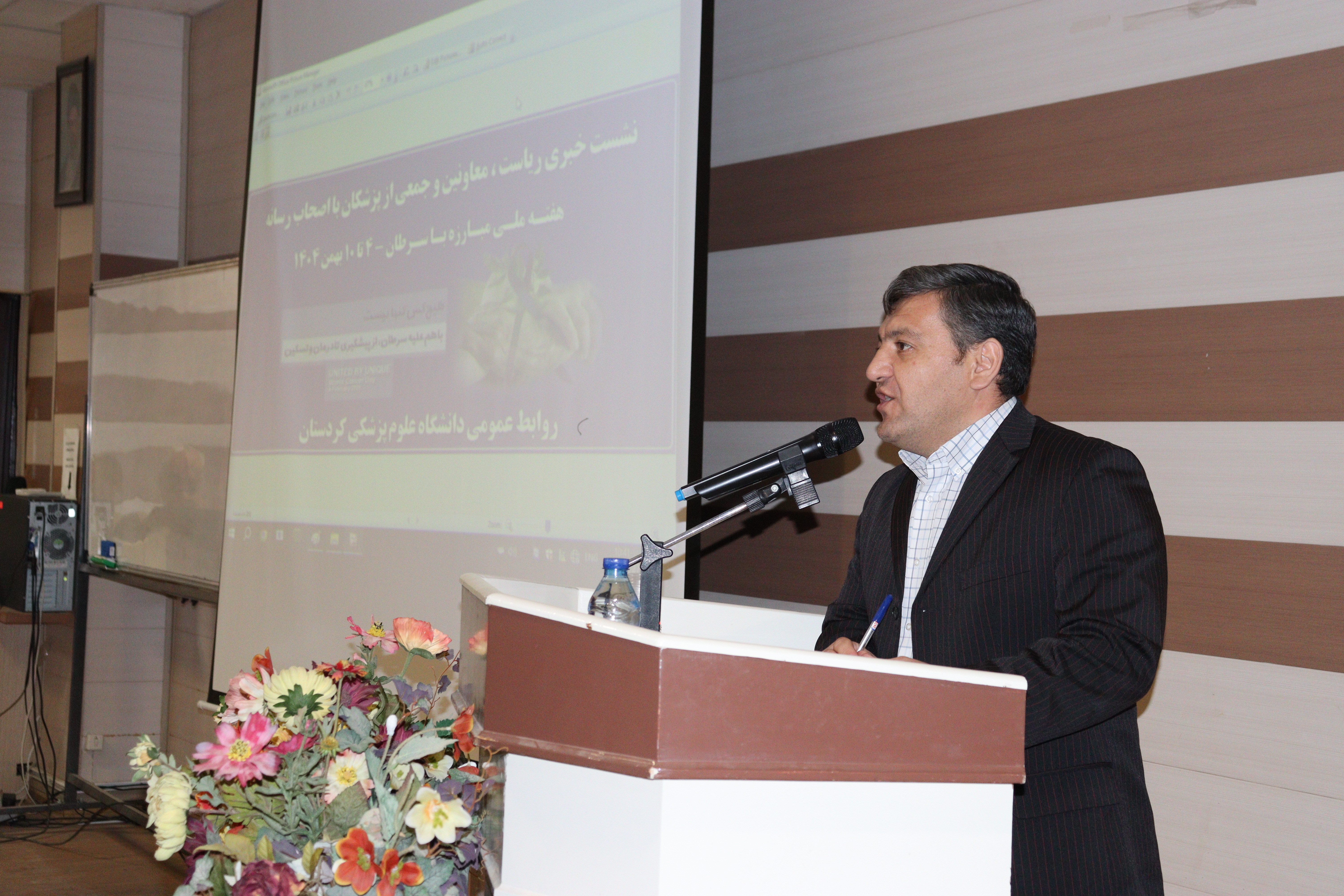 مدیر روابط عمومی دانشگاه علوم پزشکی کردستان با اشاره به هفته ملی مبارزه با سرطان در ایران که از چهارم تا دهم بهمنماه با شعار «هیچکس تنها نیست؛ با هم علیه سرطان از پیشگیری تا درمان و تسکین» برگزار میشود، افزود: میزبانی از اصحاب رسانه در این هفته برای دانشگاه علوم پزشکی کردستان افتخار بزرگی است و این حضور نشاندهنده اهمیت جایگاه رسانه در کنترل و پیشگیری از سرطان است.